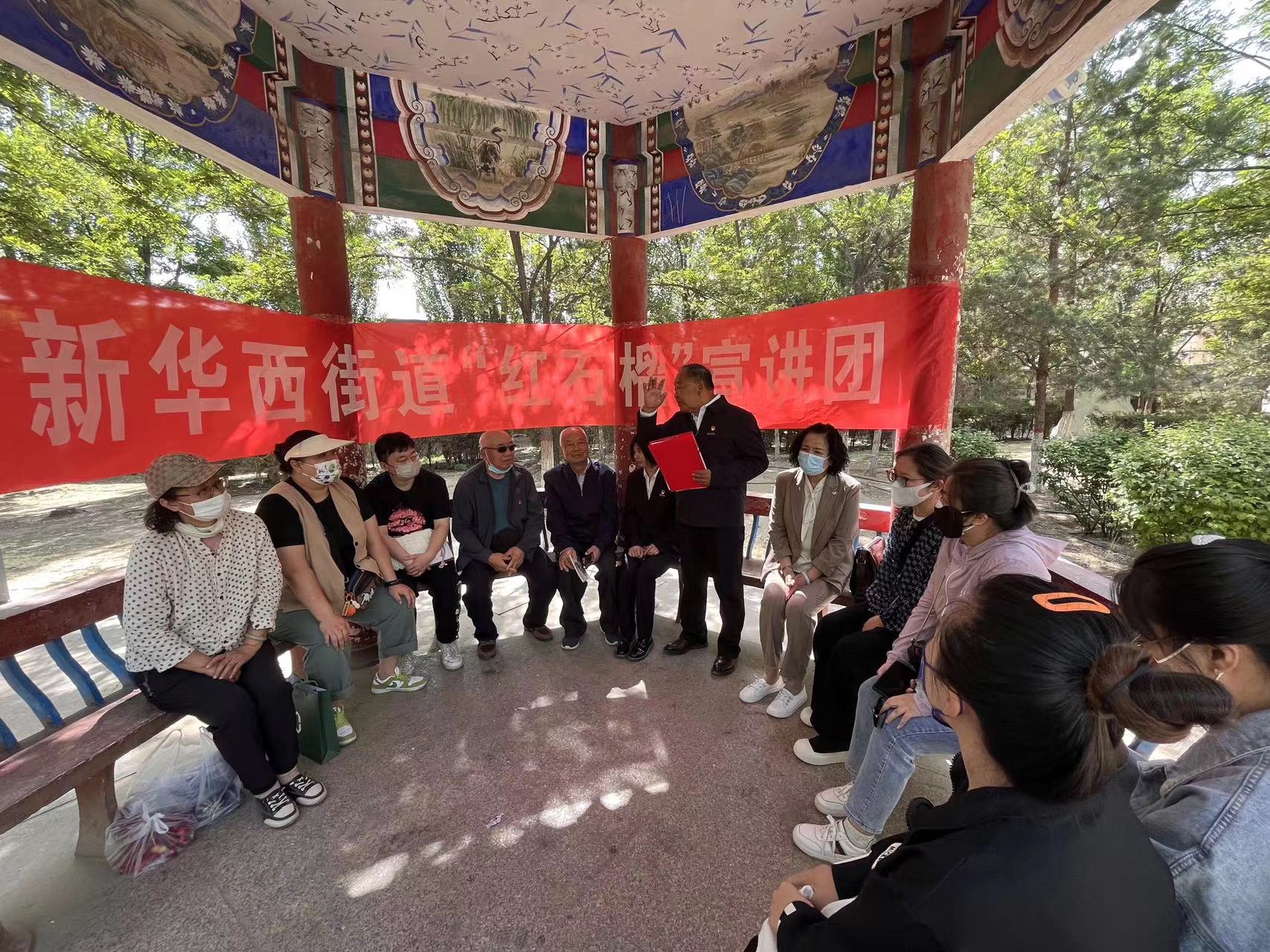新华西街道“红石榴”宣讲团由辖区关工“五老”成员、退休老党员、老教师、道德模范、身边好人、街道社区工作人员等20余名队员组成。